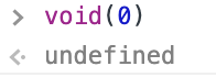 브라우저 개발자 모드의 console에서 void(0)를 실행한 결과 undefined가 출력되는 것을 볼 수 있다.